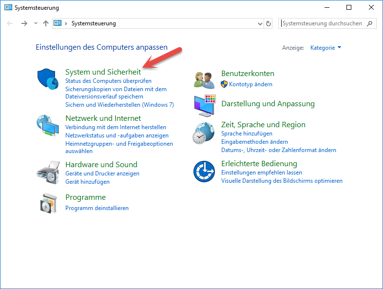 Öffnen Sie die "Systemsteuerung" von Windows und wählen Sie den Bereich "System und Sicherheit".