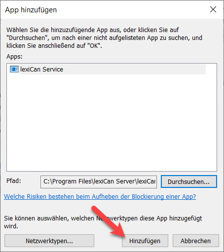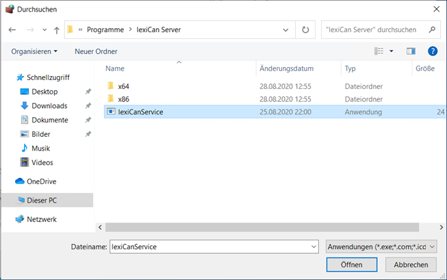 Navigieren Sie im Dateimanager zur Datei C:\Programme\lexiCan Server\lexiCanService.exe.