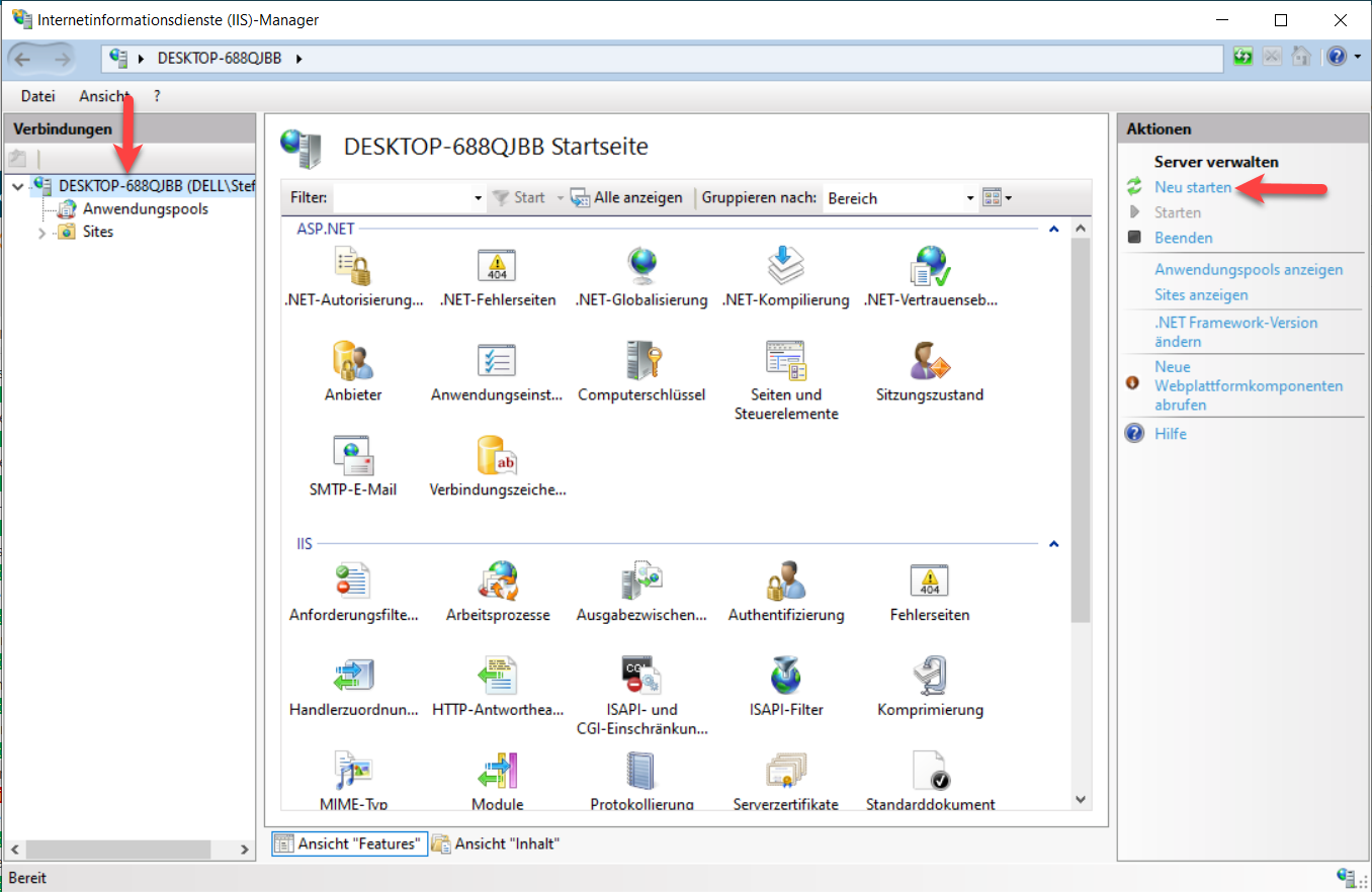 3. Starten Sie anschließend den Webserver neu, um die vorgenommenen Änderungen zu aktivieren.