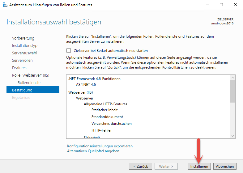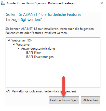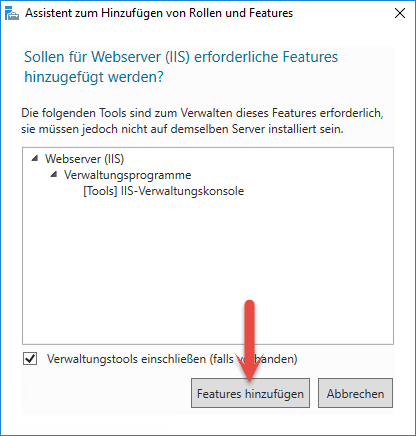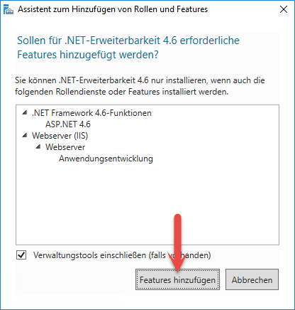 Bestätigen Sie diese Auswahl und klicken Sie erneut auf "Features hinzufügen".
