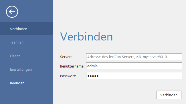 Die Systemverwaltung erfolgt mit Hilfe des Administrators. Nach dessen Installation müssen Sie ihn starten und eine autorisierte Verbindung mit dem Server herstellen. Wenn Sie noch keine eigenen Zugangsdaten erstellt haben, nutzen Sie hierfür die "werkseitigen" Zugangsdaten.